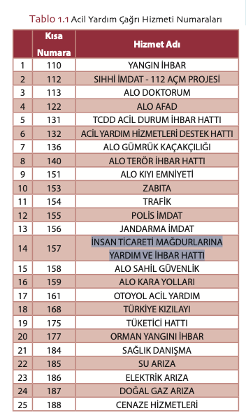 Yukarıda acil yardım çağrı hizmeti ve numaraları verilmektedir. Bu acil yardım çağrı hizmeti ile numaralarının doğru bir biçimde eşleşmesi şu şekildedir: