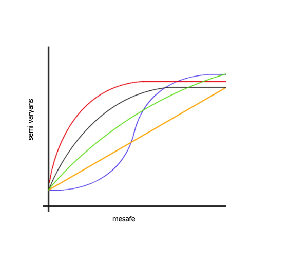 Aşağıdakilerden hangisi "örnek değerlerini arasındaki farkların karelerinin ortalamasının mesafe ile değişimini ifade eden eşitliktir." olarak tanımlanan terimdir?