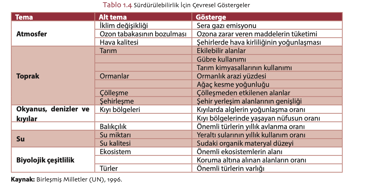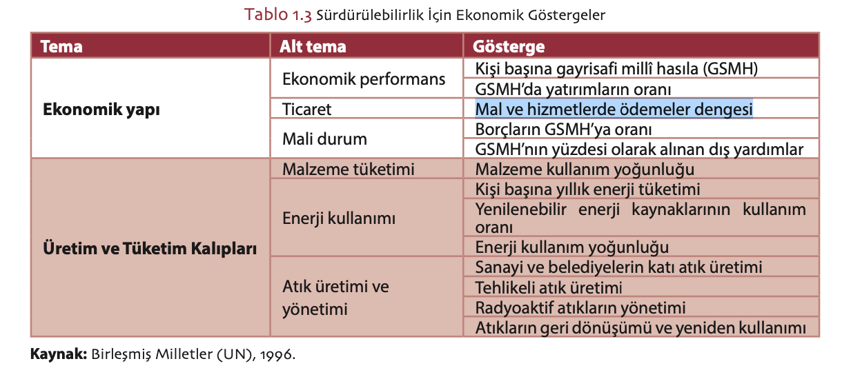Aşağıdakilerden hangisi çevresel sürdürülebilirlik göstergeleri arasında yer almaz?