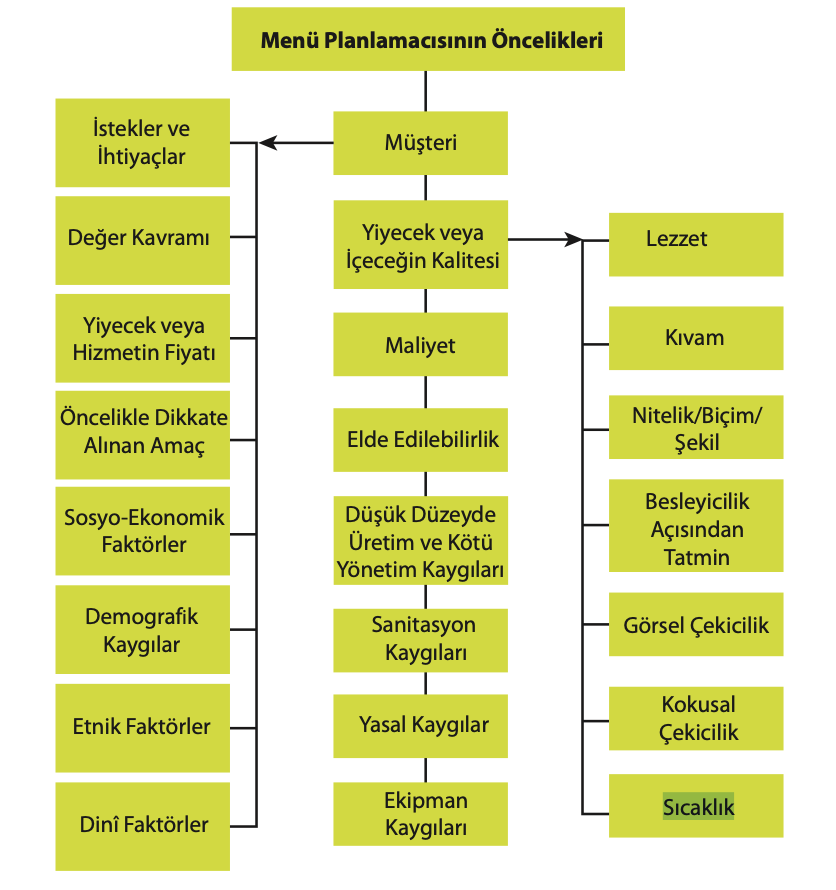 Aşağıdakilerden hangisi menülerin hazırlanması ve doğru planlanması aşamasında önemli olan noktalardan biridir ?