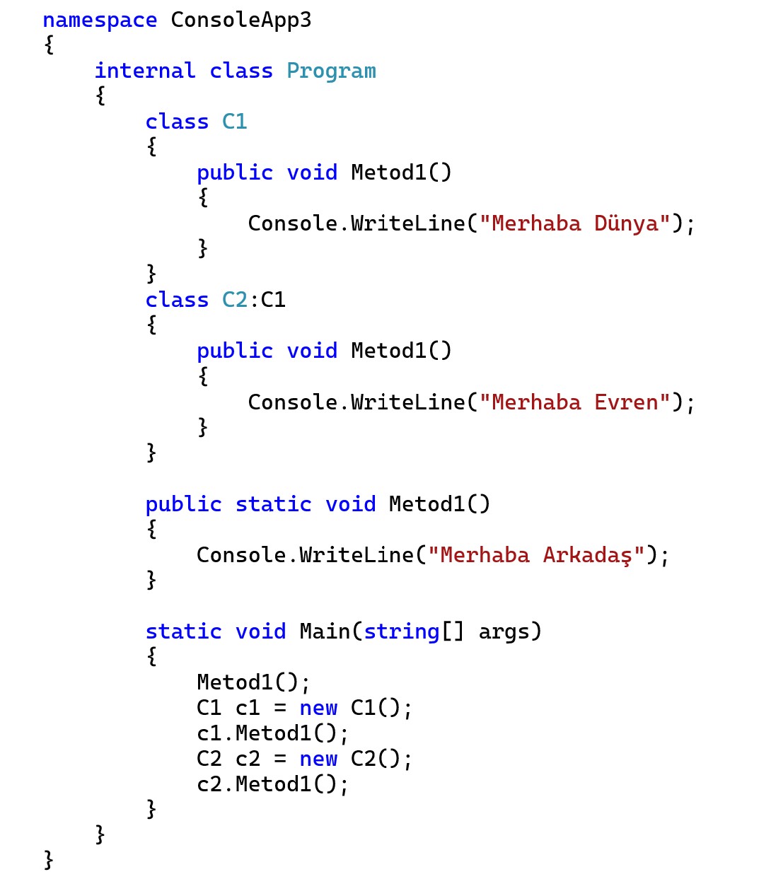 - “override” edilecek metot tanımlanırken, “virtual” ve “override” anahtar kelimeleri kullanılır.