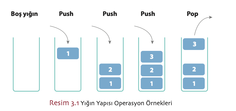 4. Yığın boşalana kadar 2. ve 3. adımları tekrarlamaya devam edin.