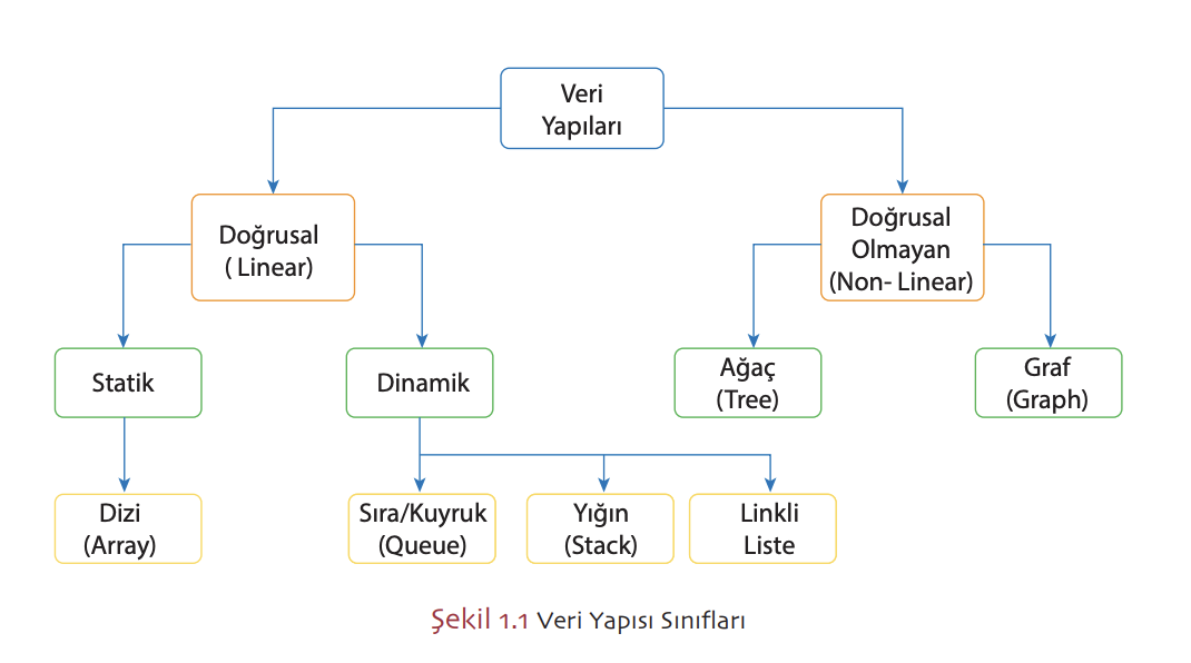 Veri yapıları, verilerin bilgisayar ortamında yönetilmesi ve depolanmasını sağlayan veri nesneleri koleksiyonu olarak tanımlanabilir.