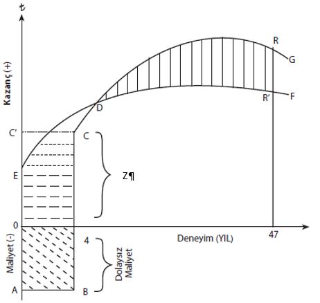 Grafikte yer alan "Z" "Dolaylı Maliyet" tir. Bseşeri Sermaye Teorisine göre eğitimin doğrudan maliyetleri, vazgeçilen diğer alternatifi ifade eden dolaylı maliyeti ve psikolojik maliyeti söz konusudur. Ancak grafiksel gösterimde psikolojik maliyetler yer almamaktadır