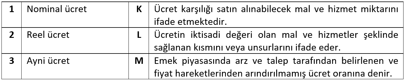 Yukarıda tabloda verilen ücret türleri ve tanımlarının doğru eşleştirmesi aşağıdakilerden hangisidir?Seçenekler