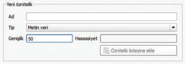 Katman özellikleri -> Alanlar