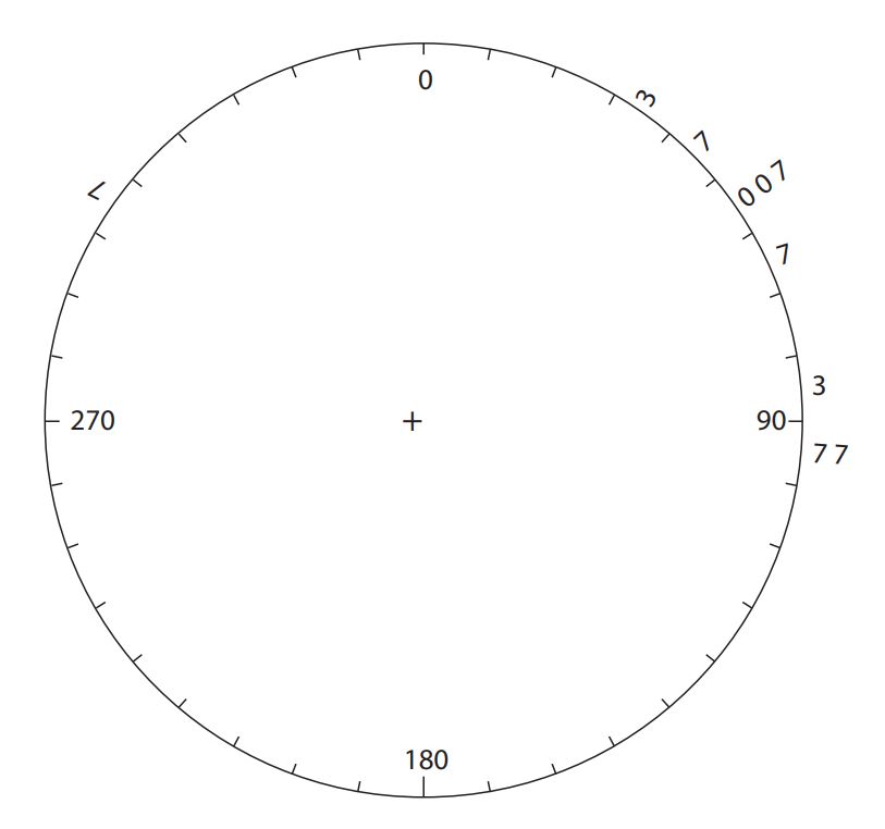 Aşağıda sunulan görselde, Batı yönünü temsil eden nokta başlangıç noktası olarak kabul edilmiş ve dönüş doğrultusu olarak da saat yönünün tersi seçilmiştir. Buna göre, işaretli noktayı temsil eden değer aşağıdakilerden hangisidir?
