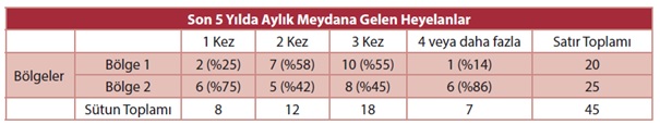 Kontenjans tablosu, iki yönlü sınıflama tablosu olarak adlandırılır. Araştırmacıya iki değişken arasındaki ilişki hakkında daha fazla bilgi vermek amacı ile oluşturulurlar. Kontenjans tablosunda yer alacak değişkenlerin kategorik ya da kategorik değişkene dönüştürülebilir olması gerekir. Ele alınan iki değişkenden birisi satırda diğeri ise sütunda temsil edilecek biçimde bir tablo oluşturulur. Tablonun içi sayma yolu ile doldurulur. Tablonun gözelerinde frekanslar yer alır. Doğru cevap ( C) seçeneğidir.