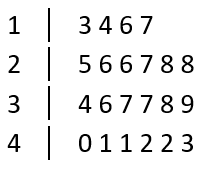 33°, 47°, 50°, 57° verilerini temsil eden dal-yaprak diyagramı aşağıdakilerden hangisidir?