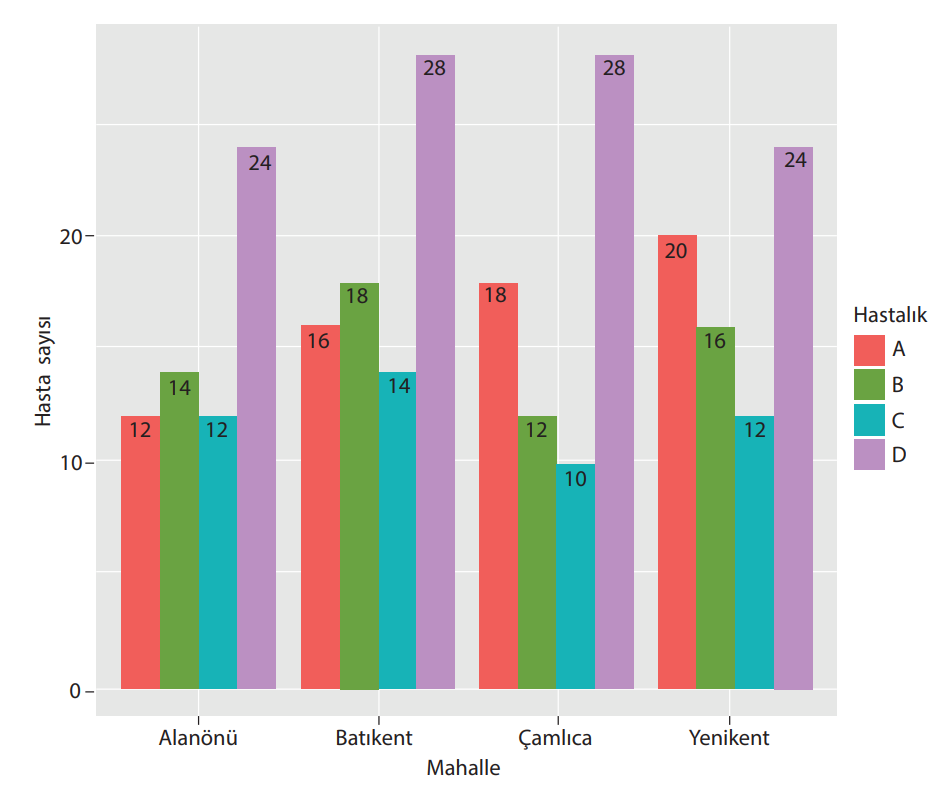 Grafikteki 10°’lik her bir aralık dal adını alırken, yapraklar bu aralıktaki gözlem değerlerinin birler basamağını oluşturur. Doğru yanıt B seçeneğidir.