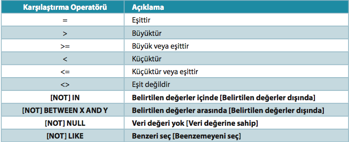 Aşağıdaki sorgulamalardan hangisi İçine Düşenleri Seç operatörü ile yapılabilir?