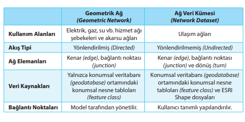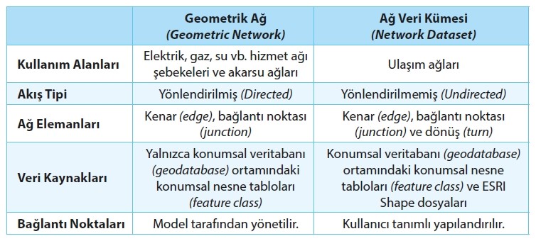 • Konumsal nesne veri kümeleri (Feature Datasets) • Topolojiler (Topologies) • Ağ veri kümeleri (Network Datasets) • Geometrik ağlar (Geometric Networks) • Etiket (Annotation) • Ölçüm (Dimension) • Çoklu Yama (Multipatch) olarak sıralanabilir.