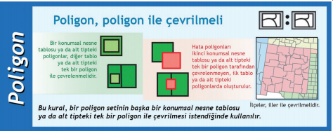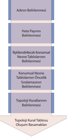 Konumsal özellikler, konumsal ilişkiler ve veri kümelerinin bütünlük kuralları tanımlanır.