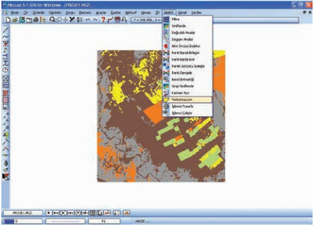 Sınıflandırma işlemleri, Uzaktan Algılama çalışmalarında matematiğin ve istatistiğin en çok kullanıldığı işlem basamaklarını barındırır. Bu menüde bulunan fonksiyonların uygulanması kapsamında, piksellerin yansıma değerlerinin sınıflandırılarak haritalanmasına hazırlanması, ait oldukları cisimlerin özelliklerinin imza olarak kullanılması ile tanınabilmesi, kontrollü veya