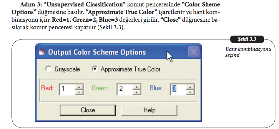 Erdas Imagine programında bir raster veri görüntülenirken, görüntülerin yeryüzünü temsil eden yansıma değerlerini gerçek renklerle ifade eden seçenek aşağıdakilerden hangisidir?