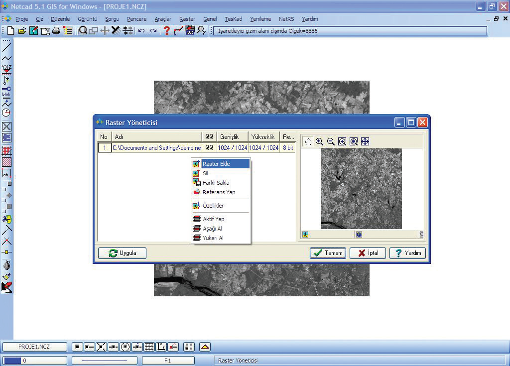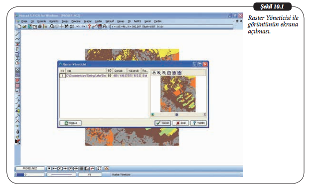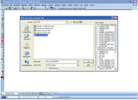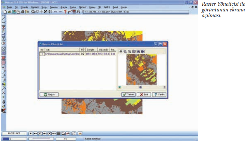 Raster veriyi Netcad ekranında açmak için Raster/Raster Yöneticisi komut penceresine girilir.