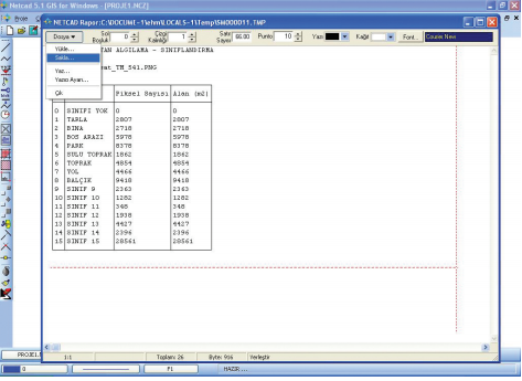 - Erdas Imagine programı, Görüntü İşleme ve Coğrafi Bilgi Sistemi analizleri için