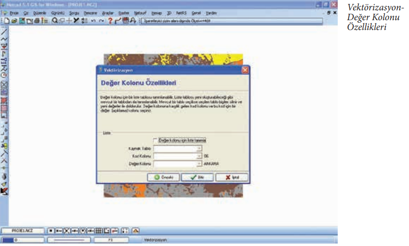 Adım 2: Raster veri üzerinden vektör veri üretmek için “NetRS/Vektörizasyon” komut penceresi açılır