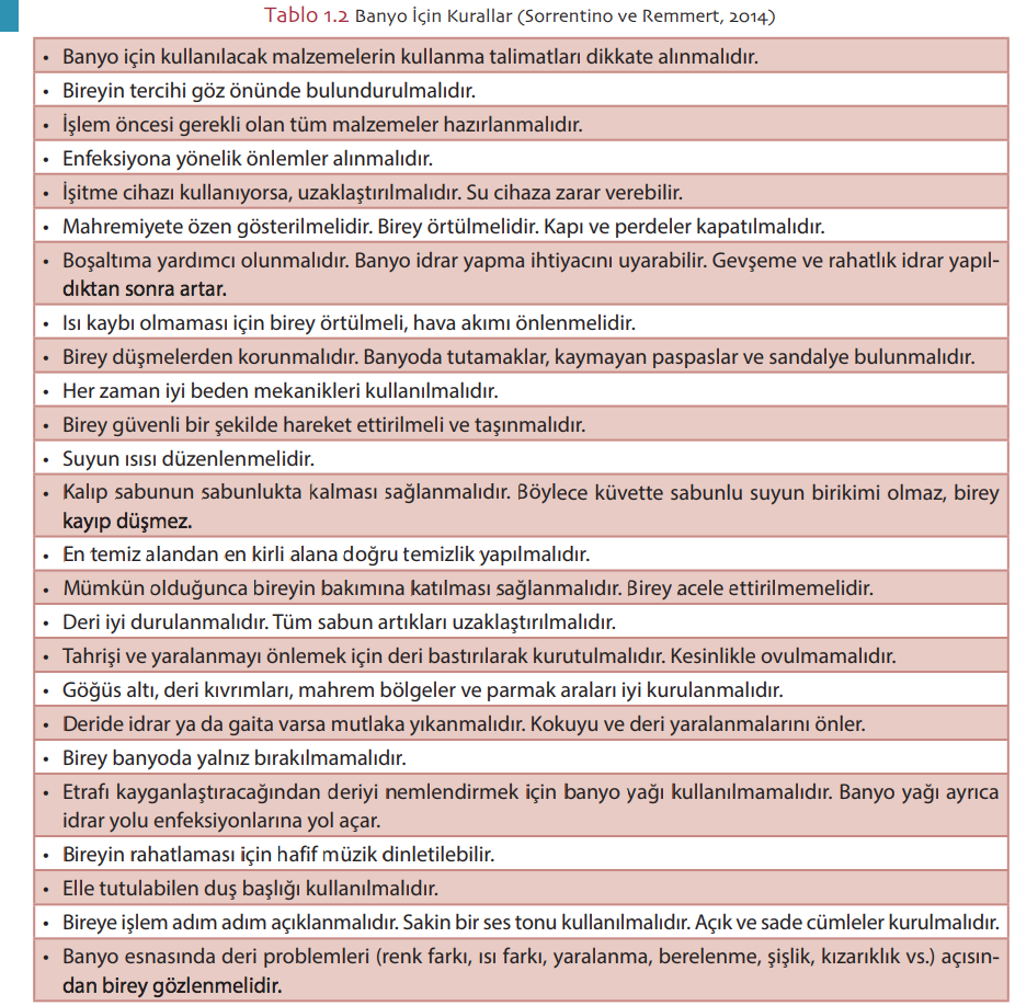 2. Tuvalet ihtiyacını gidermede yardım edil- mesi ve gerektiğinde temizliğinin yapılması,