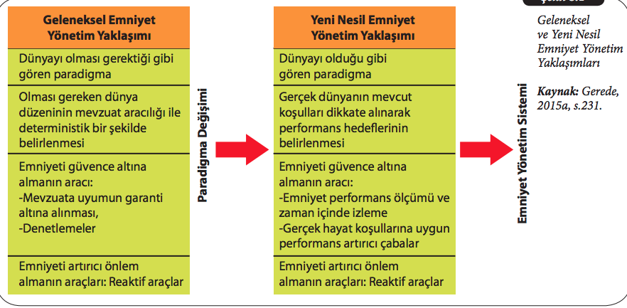 Emniyeti yönetmek için dünyayı olması gerektiği gibi gören, uyumu garanti altına almak için denetlemeyi esas alan, sistemin bütününü görmeyen, alt sistem etkileşimlerini dikkate almayan emniyet yönetim yaklaşımı geleneksel paradigma ile ilgilidir.
