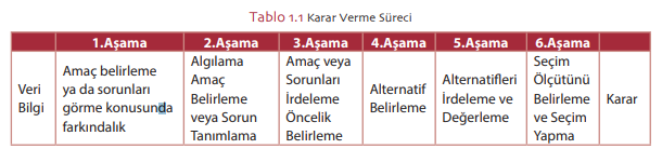 Karar verme sürecinin ilk aşaması hangisidir?
