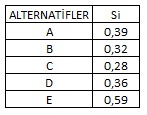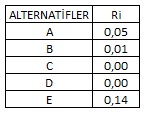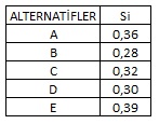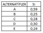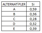 I.VIKOR tekniğinde normalizasyon işlemi için Doğrusal Orantı yaklaşımı kullanılmaktadır.