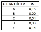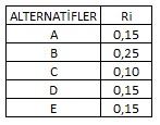 II- VIKOR tekniğinde kriter ağırlıkları oran olarak ifade edilmekte ve toplamı 1’e eşit olmaktadır.