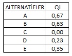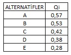 q parametresi ise kriterlerin çoğunluğunun ağırlığını (maksimum grup faydasını) gösterir.