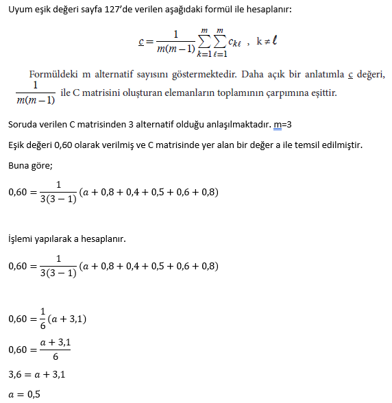 kriterin değerlendirildiği karar verme problemlerinde alternatifler arasından uzlaşık bir