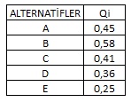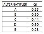 Alternatif sayısı 4’ten küçük olduğunda ise DQ = 0,25 olarak kabul