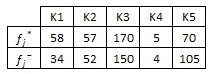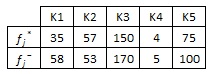 Her Kriter İçin En İyi (f j* ) ve En Kötü (f j−) Değerlerin Belirlenmesi