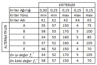 VIKOR tekniğinde karar verme süreci, karar probleminin tanımlanması ile başlar. Çözüm algoritmasının adımları uygulanırken, kriterin özelliği maliyet olduğunda tüm değerler içinden en küçük değer tercih edileceğinden, çözüm için oluşturulan tablolarda kriterin yönü (min)