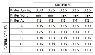 değerler içinden en büyük değer tercih edileceğinden kriterin yönü de (max) biçiminde