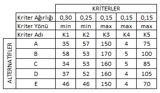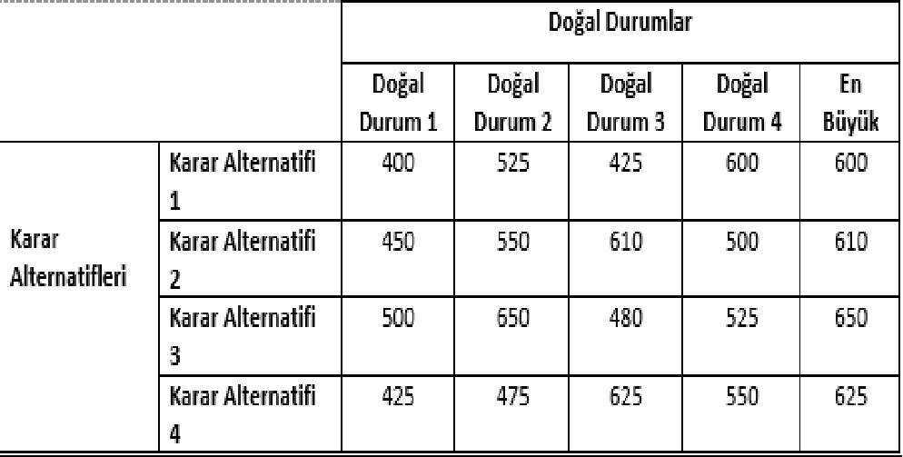 değerler içinden en büyük değer tercih edileceğinden kriterin yönü de (max) biçiminde