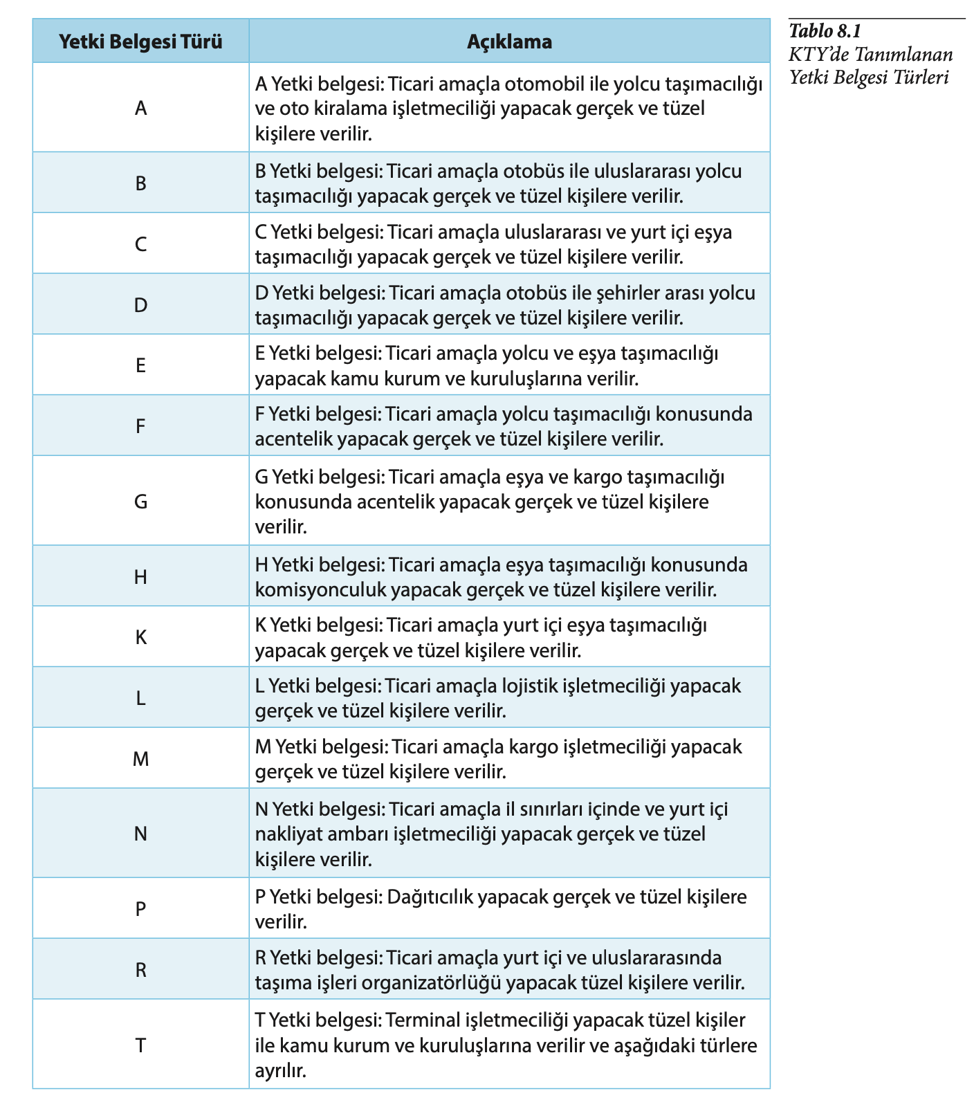 F Yetki belgesi: Ticari amaçla yolcu taşımacılığı konusunda acentelik yapacak gerçek ve tüzel kişilere verilir. Doğru cevap C şıkkıdır.