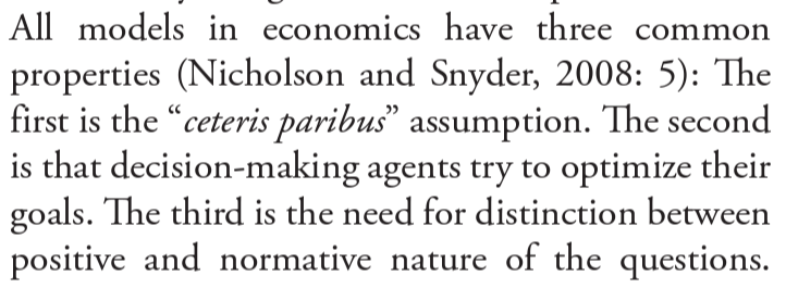 Which below is one of the three common properties in all models in economics according to Nicholson and Snyder?