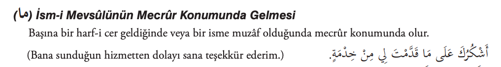 Arapçada fiil cümlesinde fiilin oluş nedenini açıklayan belirsiz mastarlar mef‘ûlun lehtir. Bu cümle “Vatanı savunmak için düşmanla savaşırız.” anlamına gelir. Altı çizili kelime olan دفاعا cümlede düşmanla neden savaşıldığını açıklar. Belirsiz ve mansûb bir mastardır. Bu bakımdan mef‘ûlun lehtir. Doğru cevap E’dir.