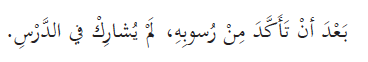 ifadesi "Kaldığından emin olduktan sonra derse katılmadı." anlamında;