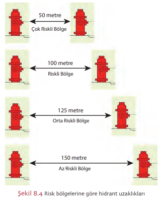 Orta riskli bölgelerde hidrantlar arasında 125 metre mesafe olmalıdır.