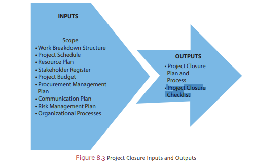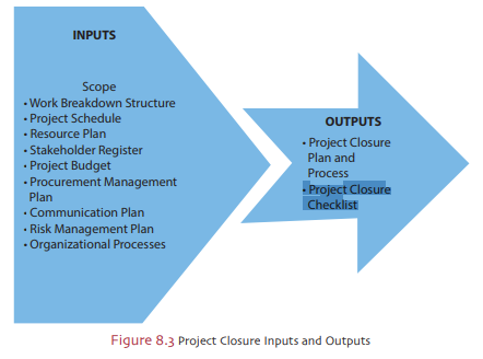 The project closing process group consists of works required to complete or close the project activities throughout the project life cycle. In this process, contractual obligations are generally fulfilled, procurement documents are completed, transfer contracts between project and operation teams are made, and resources are reallocated.
