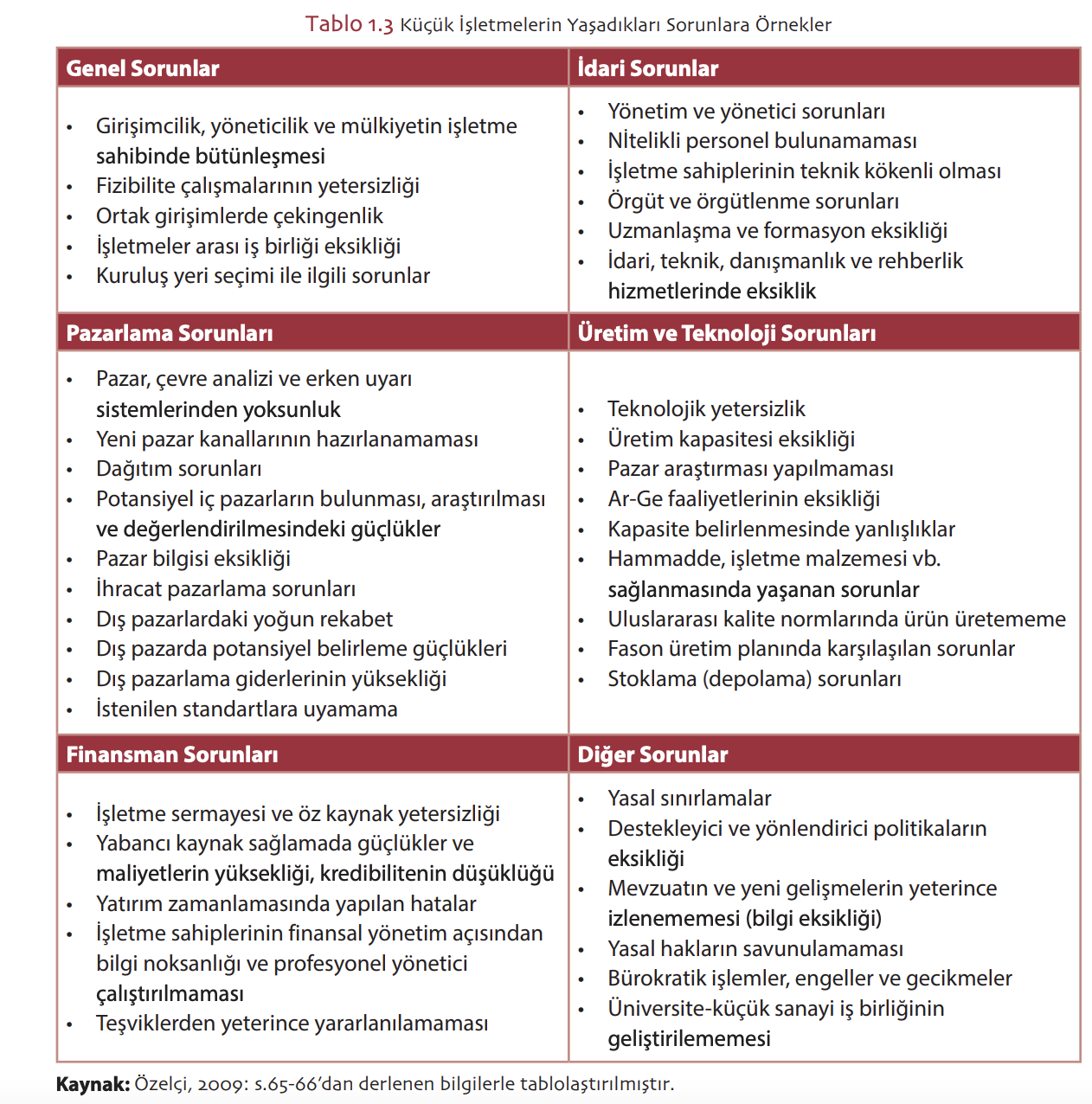 "Uzmanlaşma ve formasyon eksikliği", küçük işletmelerin yaşadıkları idari sorunlardan biridir.