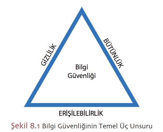 Bilgi güvenliği, bilginin yetkisiz veya izinsiz bir biçimde kullanılması, erişilmesi, değiştirilmesi, silinmesi veya kullanılmaz hale gelmesini önlemek amacı ile alınacak önlemler olarak adlandırılır (Eminağaoğlu ve Gökşen, 2009). Bilgi güvenliğinin dayandığı kavramlar aşağıda listelenmiştir (Stallings, 2003; Çalışkan, 2019):