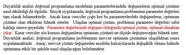 Çözümün sözel ifadesinin doğrusal programlama varsayımları altında sözel olarak ifade edilmesidir.