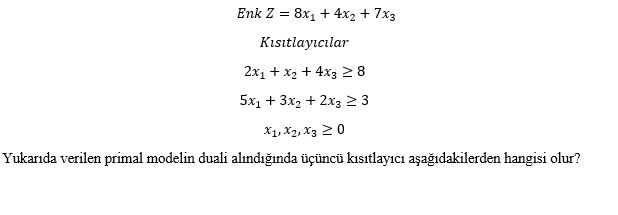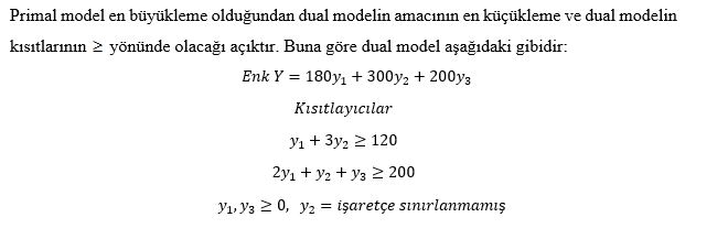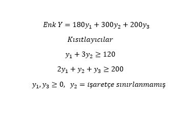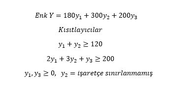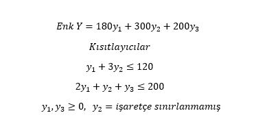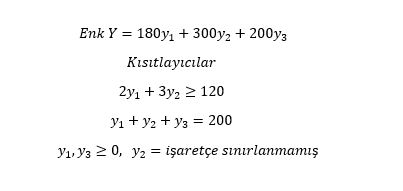 Bu kısıtlayıcıyı çarpan formuna dönüştürmek gerekmektedir.