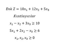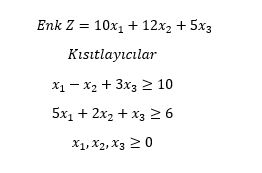 Bu kısıtlayıcıyı eşitlik formundan artan duruma dönüştürmek gerekmektedir.