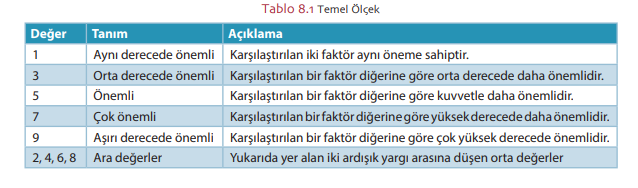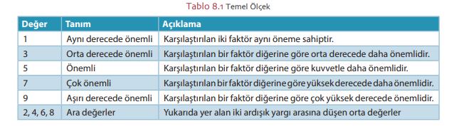 Orta Derecede önemli olarak tanımlanan bir problem, Saaty’nin 1-9 temel ölçeği arasında hangi sayıyla ifade edilir?