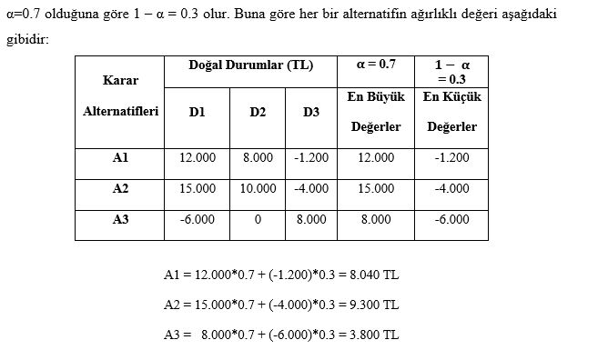kriterlerin göreli önem değerlerinin alternatiflerin kriterlere göre göreli önem değerlerine bölümünün iki katıdır