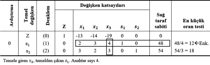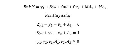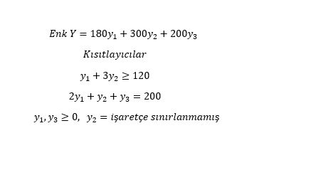Bu kısıtlayıcıyı eşitlik formuna dönüştürmek gerekmektedir.