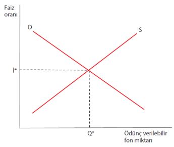 Yukarıdaki şekilde ödünç verilebilir fon arzı ve fon talebinin faiz oranları ile ilişkisi görülmektedir. Buna göre faiz oranı arttıkça aşağıdaki durumlardan hangisi gerçekleşir?Seçenekler