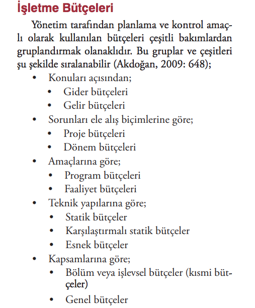 Bütçe, rakamlarla ifade edilmiş düzenli bir hareket planıdır (Büyükmirza, 2010:663). İşletme bütçeleri ise önceden ortaya konulan bir amaca ulaşabilmek için işletmenin geleceğe ait bir dönemde izleyeceği politikayı ve yapacağı işleri parasal ve sayısal verilerle açıklayan bir rapor veya raporlar dizisidir (Sevgener ve Hacırüstemoğlu, 2000:276).